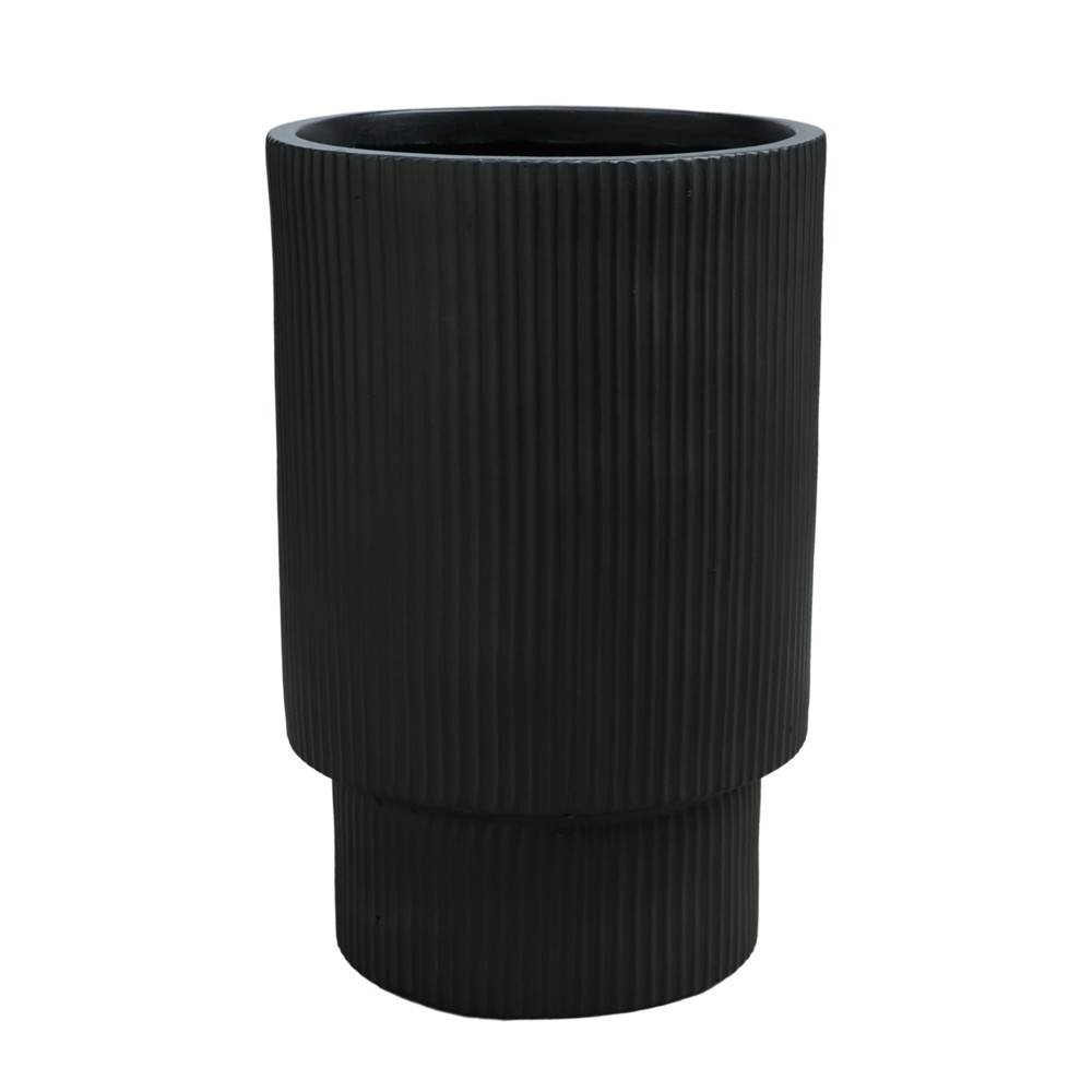 Vazo lulesh, fibër xhami/argjilë, e zezë, 24x24x36 cm