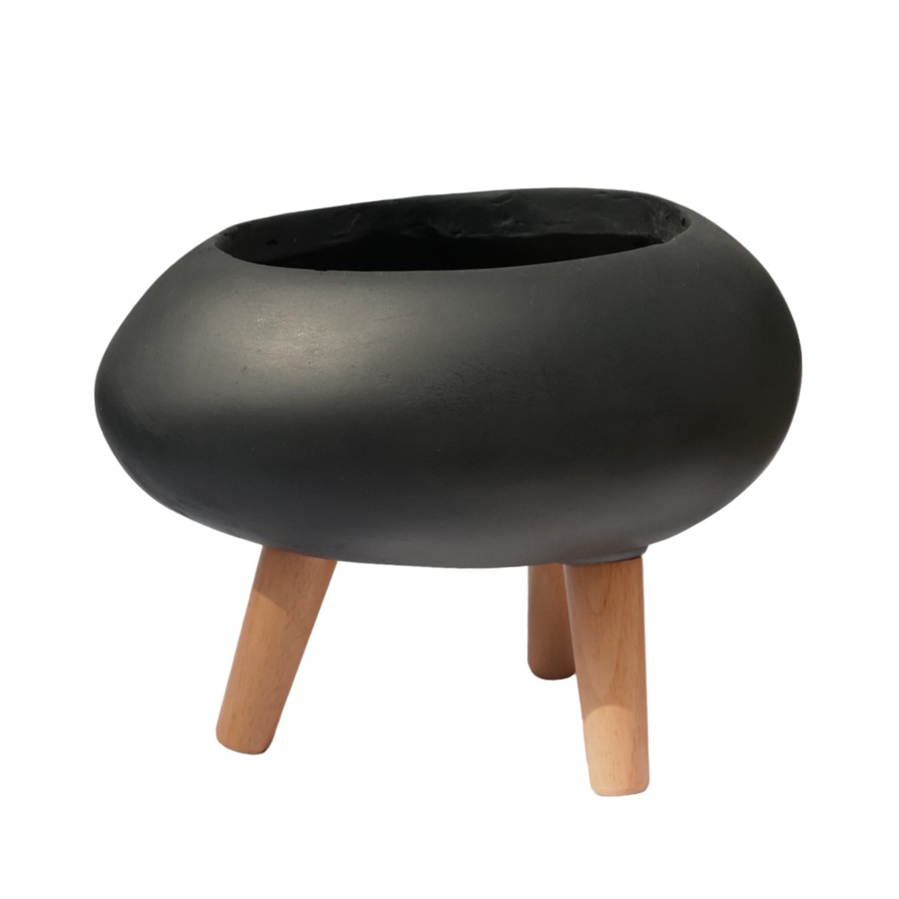 Vazo lulesh, fibër xhami/argjilë, e zezë, 30x22x25 cm