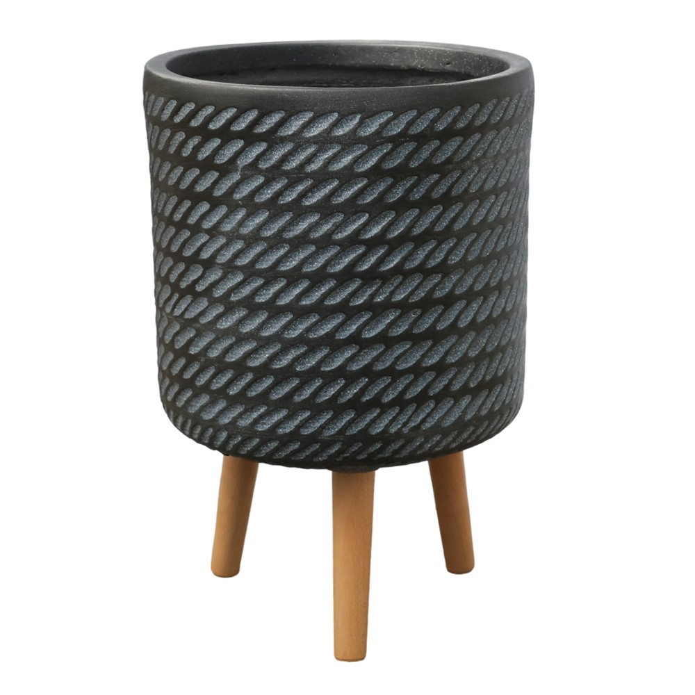 Vazo lulesh, fibër xhami/argjilë, e zezë, 30x30x46 cm