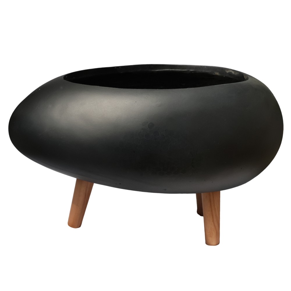 Vazo lulesh, fibër xhami/argjilë, e zezë, 50x35x31 cm