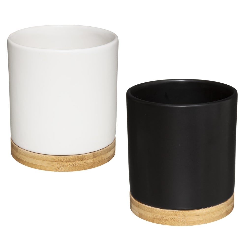 Vazo lulesh, M, qeramikë/bambu, e zezë, Ø13.8xH15.3cm