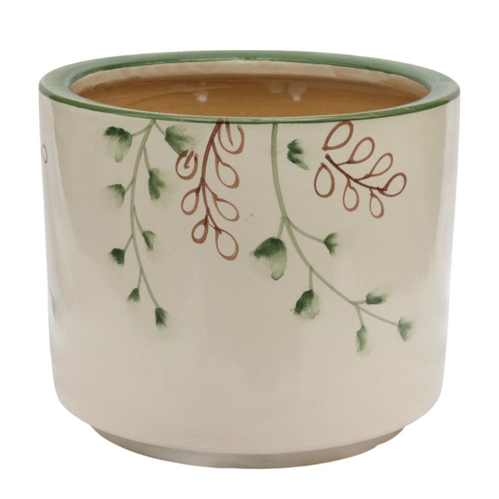 Vazo lulesh, M, qeramike, e bardhë/jeshile, Ø26xH22 cm