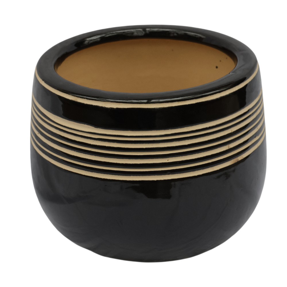 Vazo lulesh, M, qeramike, e zezë, Ø22xH18 cm