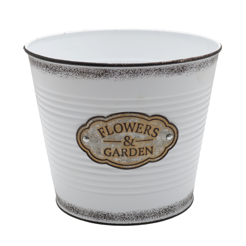 Vazo lulesh, metalike, e bardhë/kafe, 17x15 cm