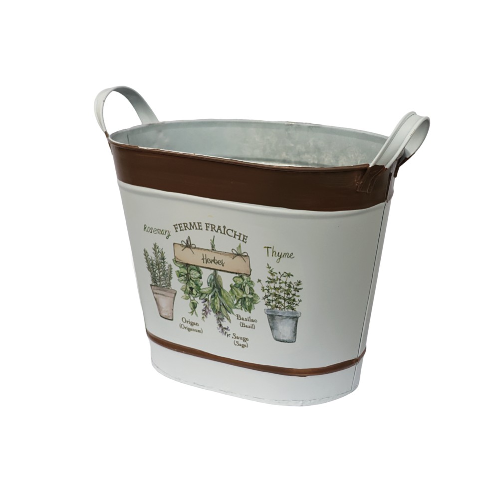Vazo lulesh, metalike, e bardhë/kafe, 20x14x16.5 cm