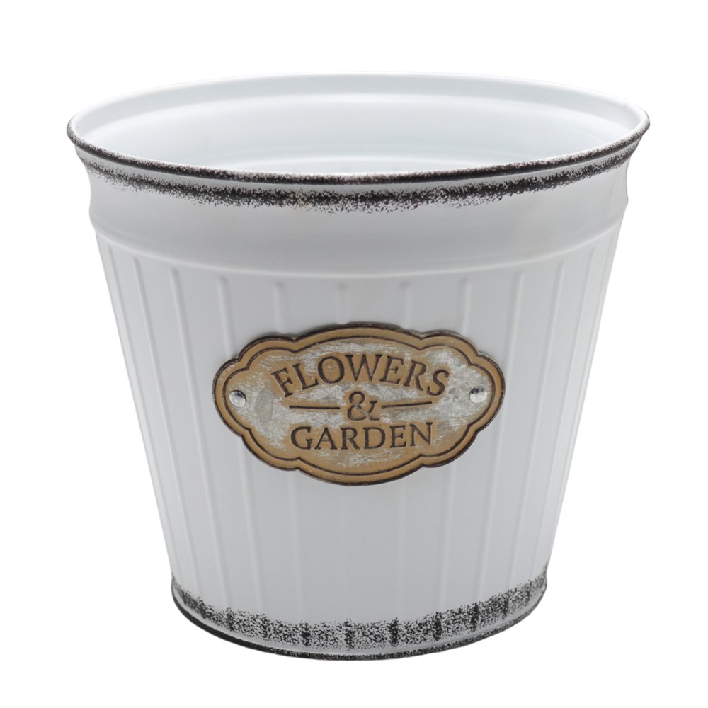 Vazo lulesh, metalike, e bardhë/kafe, 20x18 cm