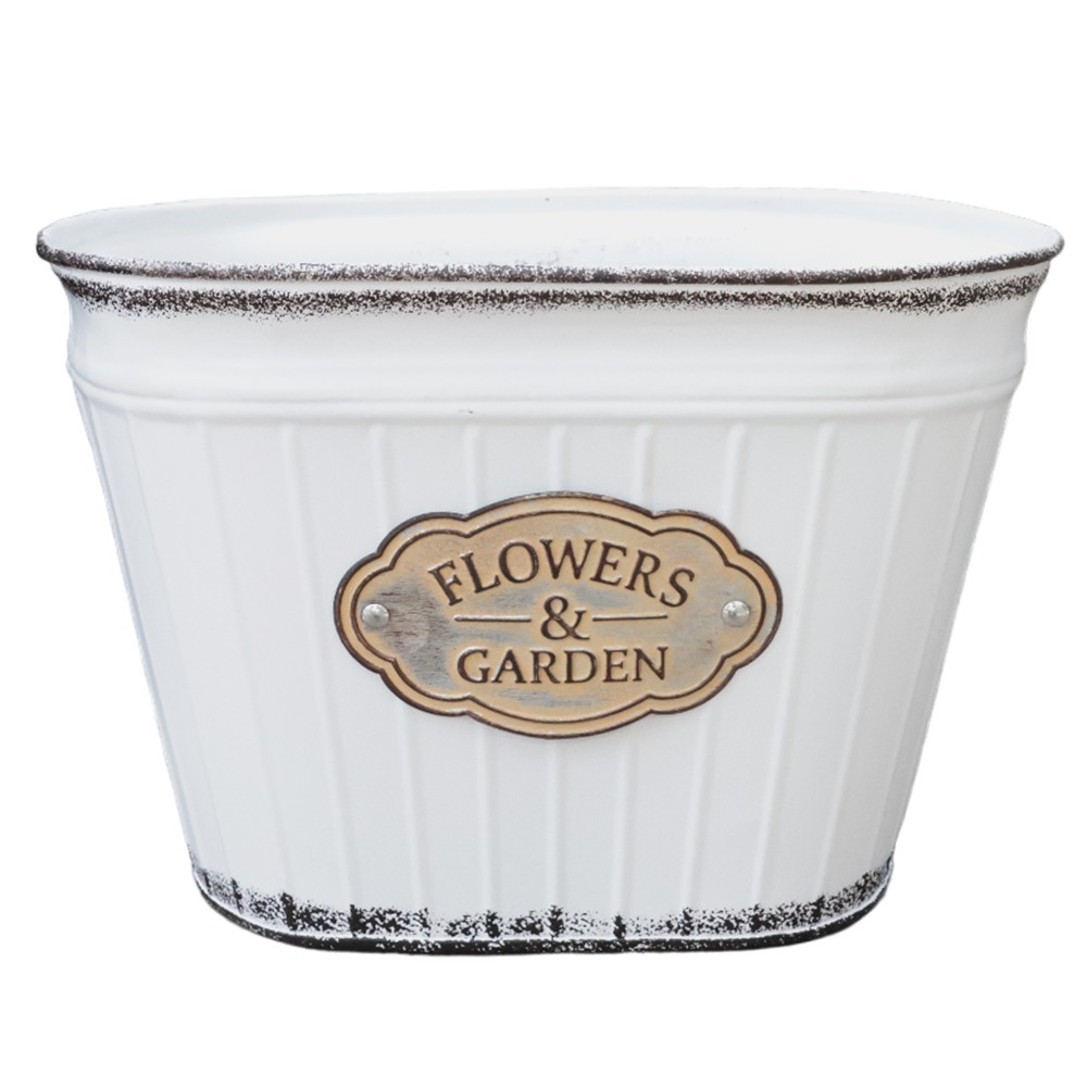 Vazo lulesh, metalike, e bardhë/kafe, 28x17x19 cm