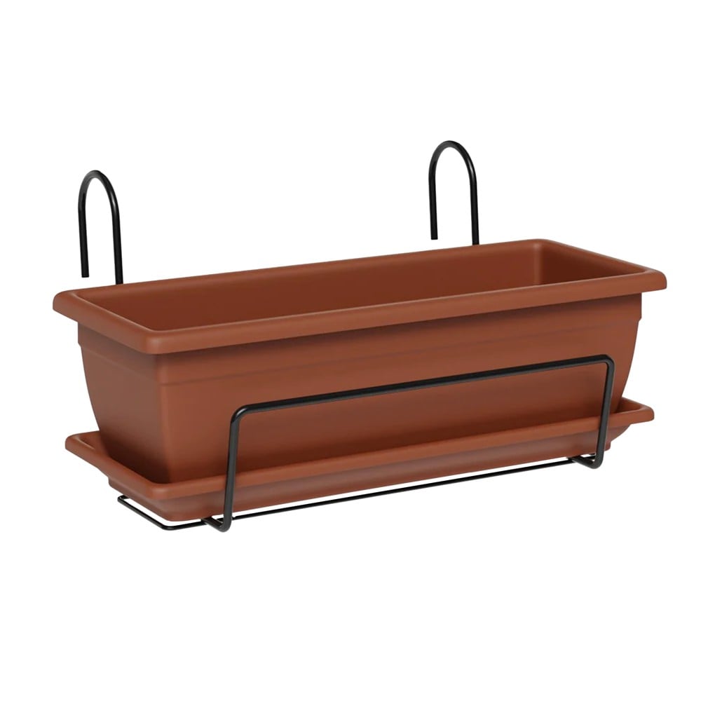 Vazo lulesh Nara Kit është një pjesë dekorative e cila mund të përdoret për mbajtjen e luleve ose dekorimit të ambienteve të ndryshme. Kjo vazo është e bërë nga plastika, ngjyrë terrakotë dhe ka një dimension prej 40 centimetra në gjerësi, 20 centimetra në thellësi dhe një lartësi prej 16 centimetra. Materialet e përdorura e bëjnë këtë vazo të përshtatshme për përdorim në ambiente të jashtme. Gjithashtu ka dhe nje suport metalik, ku mund ta vendosni ne ballkonet e shtëpisë tuaj.