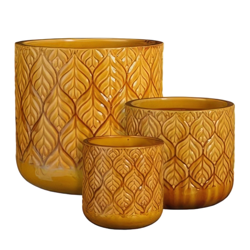 Seti vazo lulesh "Oran" ofron një kombinim të shkëlqyer të dizajnit modern dhe elegancës së thjeshtë, duke sjellë një atmosferë freskie dhe tërheqëse në ambientin tuaj. Krijuar nga qeramikë me cilësi të lartë me ngjyrë okër , ato sigurojnë një prezantim të bukur dhe tërheqës për lulet tuaja.