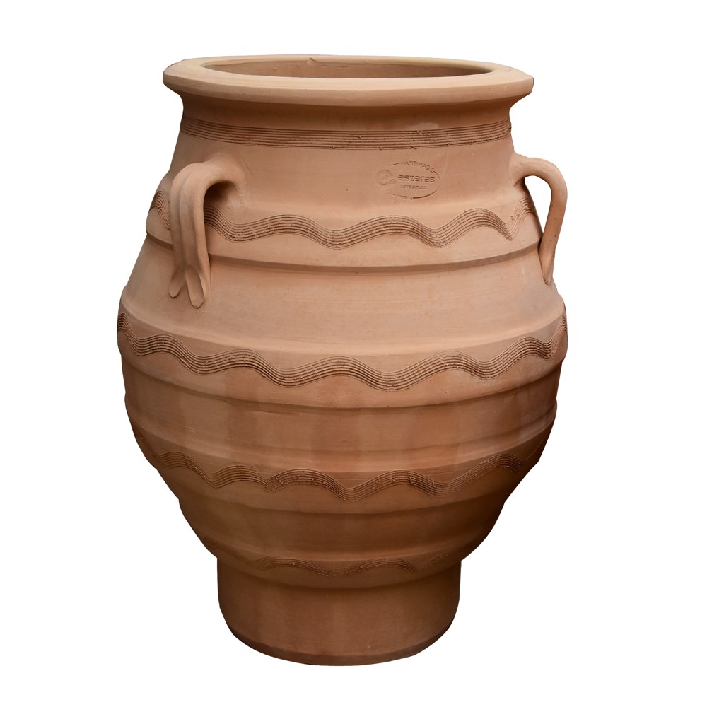 Vazoja e lules PITHARI me formën e saj rrethore me gdhendje. Linjat impresive e bëjnë këtë vazo një dhuratë të mrekullueshme për të apasionuarit pas kopshtit. Vazoja e lules PITHARI do të përmirësojë dhe zbukurojë dekorin e kopshtit tuaj. Detajet dhe stili i kësaj vazoje dhuron një vështrim të paarritshëm në projektin tuaj.
