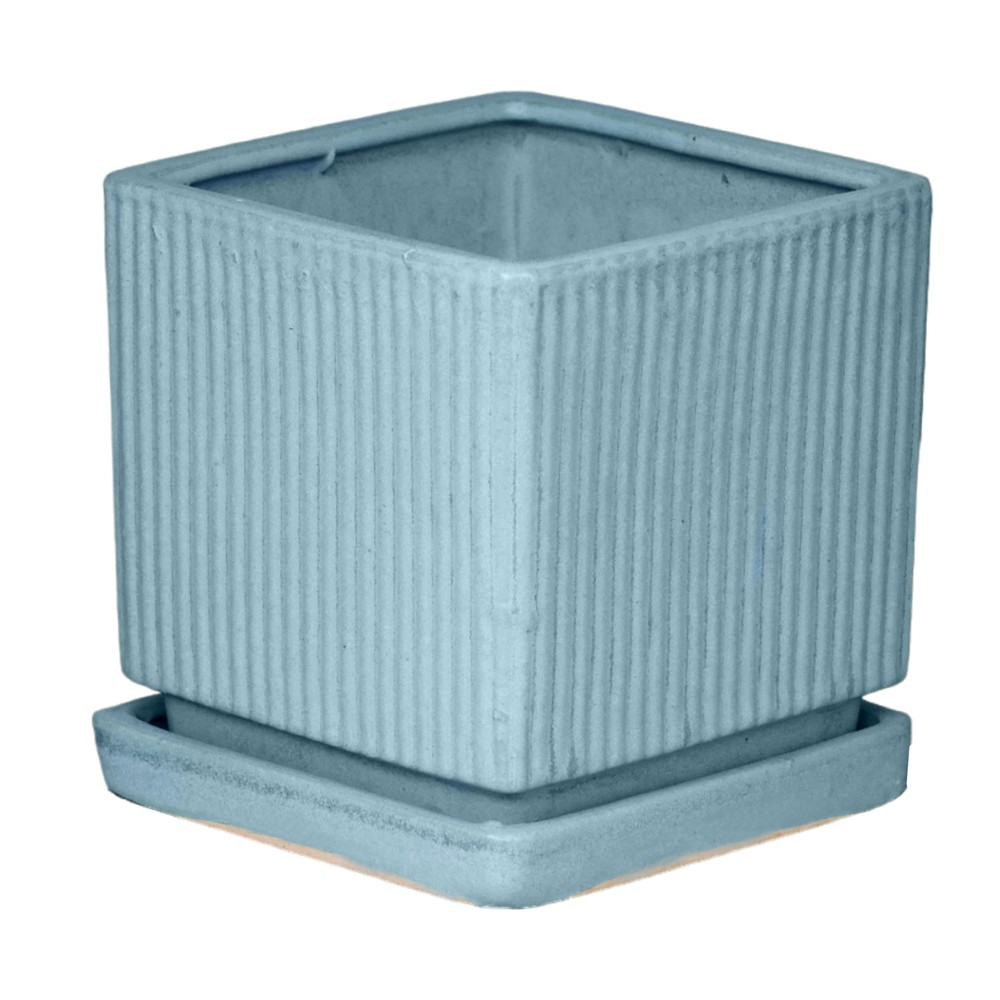 Flower pot, ceramic, blue, 13.5x13.5x13.5 cm