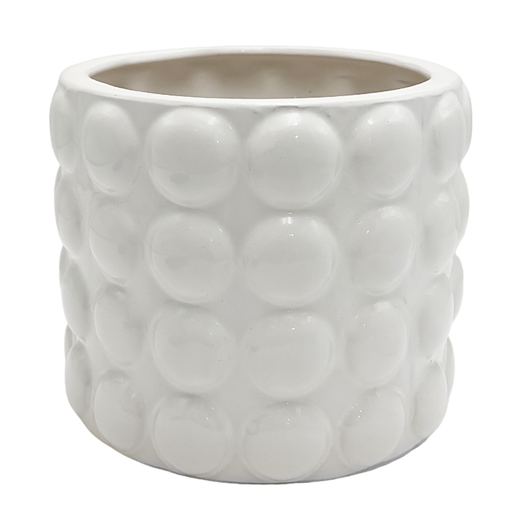 Vazoja e luleve e krijuar nga material qeramikë me cilësi të lartë me ngjyrën e e bardhë është një element dekorativ i shkëlqyer për çdo ambient shtëpie ose ambient tjetër të dëshiruar. Me dimensionet e saj të zgjeruara, 21x21x17.5 cm, ajo ofron një prezantim të shkëlqyer për lulet natyrale apo dhe lulet artificiale duke u bërë një pjesë e përsosur për të ndryshuar pamjen e një dhome, salloni, apo çdo tjetër hapësirë që kërkon një pikë fokusi të bukur. Kjo vazo mund të përdoret edhe në ambiente të tjera si restorante, zyrat, ose ambiente të tjera që kërkojnë një pikë fokusi të bukur dhe tërheqëse . Linjat impresive e bëjnë këtë vazo një dhuratë të mrekullueshme për të apasionuarit pas kopshtit.