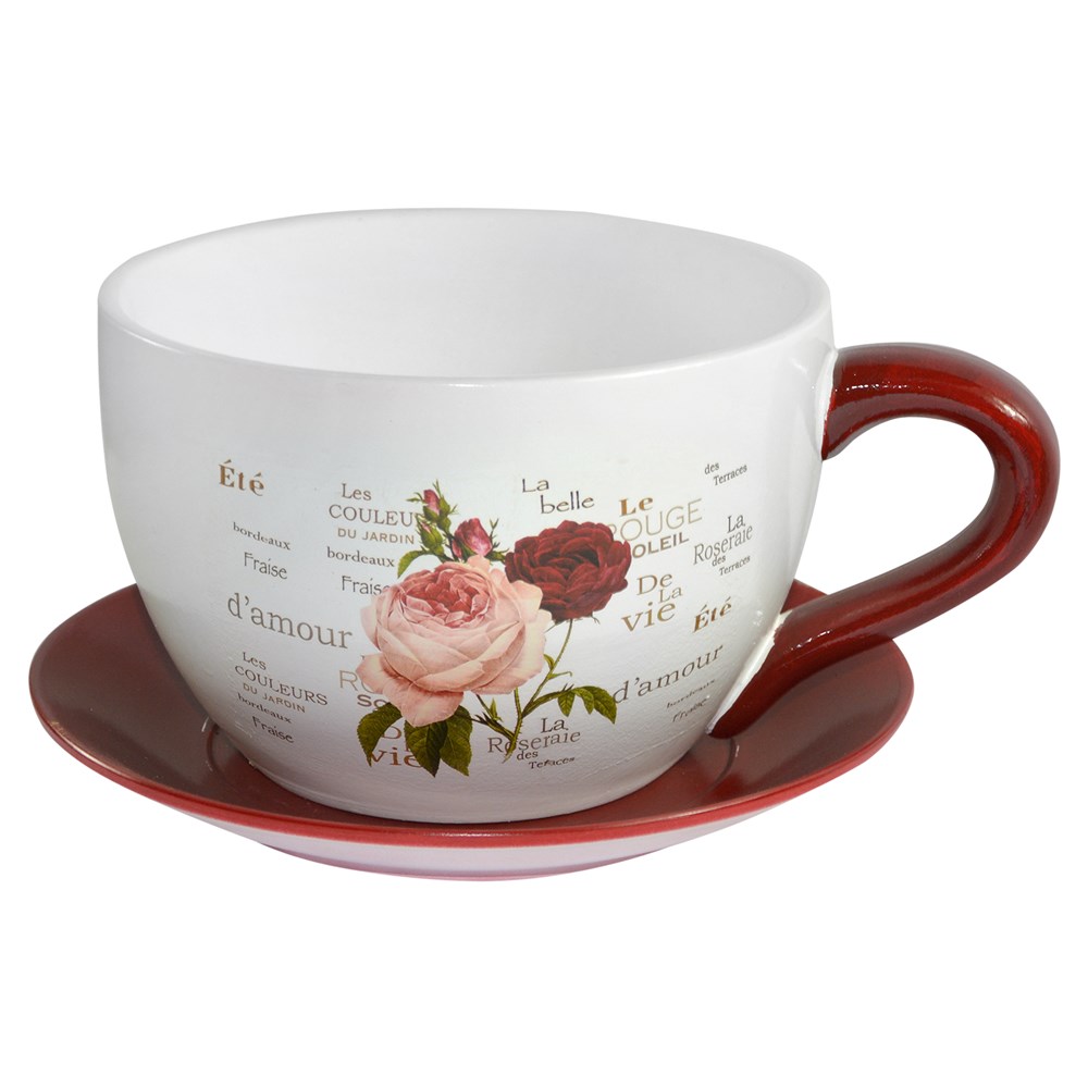 Vazo lulesh, qeramike, e bardhë / printim shumëngjyrësh, Ø22.5 xH14.5 cm, pjata: Ø28 xH3.4 cm