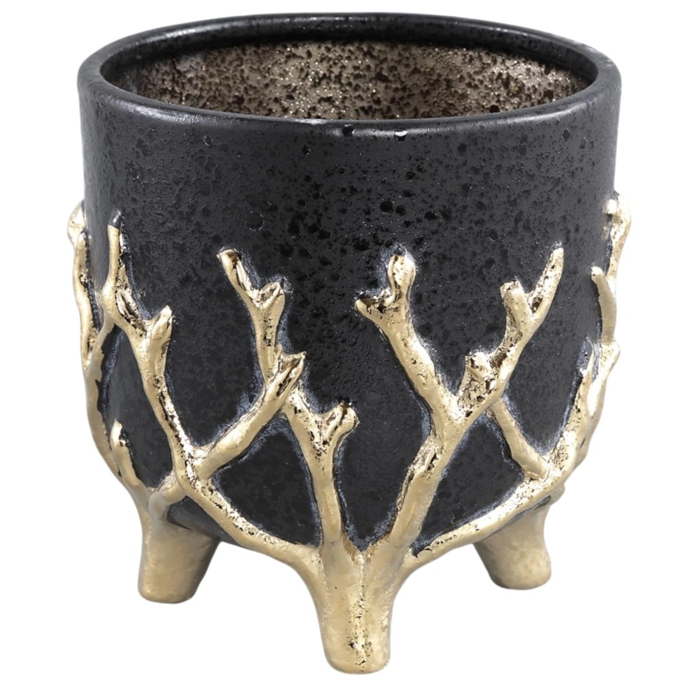 Vazo lulesh, qeramike, e zezë/floriri, 17x17xH17 cm