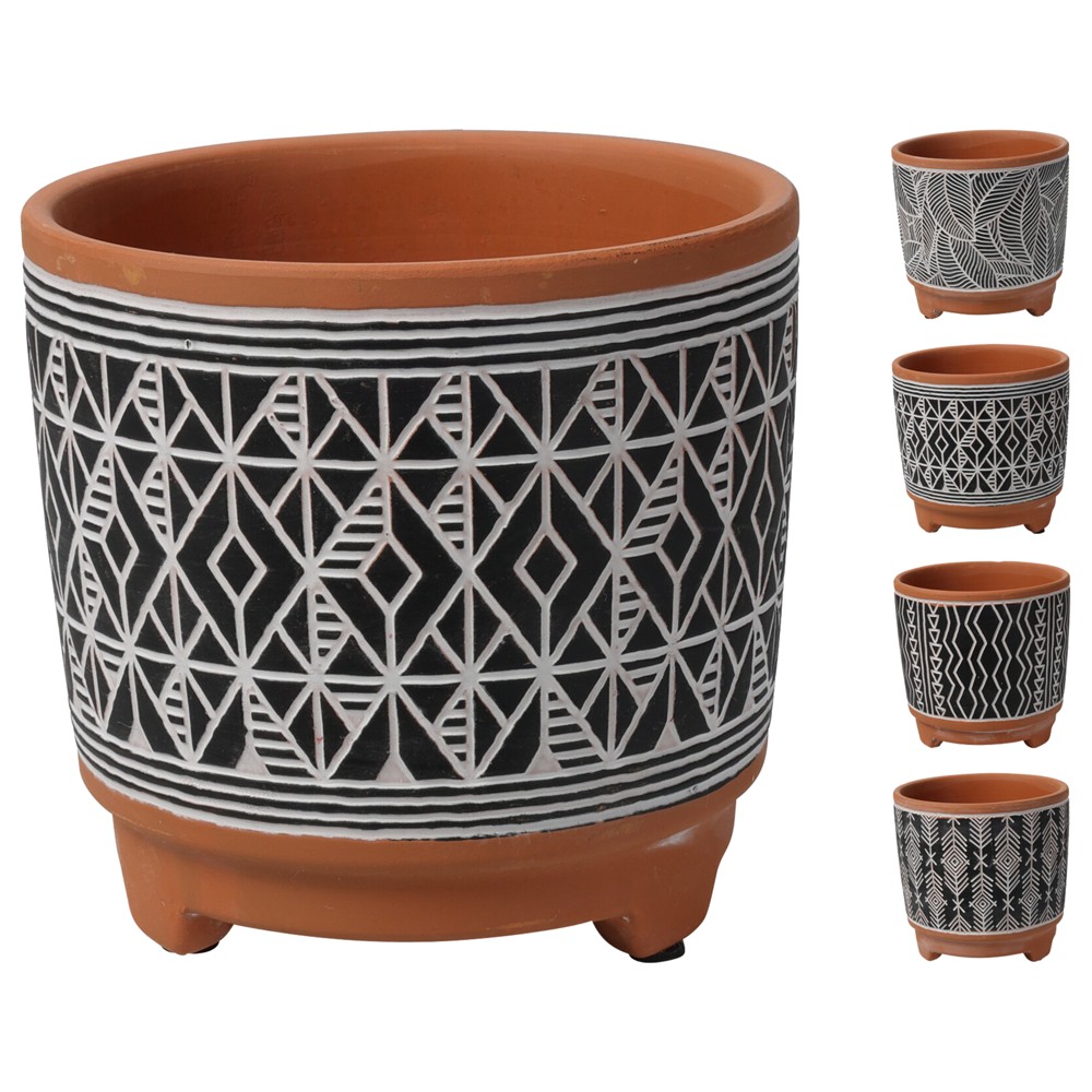 Sillni një atmosferë verore në shtëpinë tuaj me këtë vazo lule terrakote. Vazoja ka motive të zeza për thyerje ngjyre, dhe ofrohet në 5 lloje motivesh. Vazoja ka një lartësi mesatare, duke e bërë atë të përshtatshme për një lule të vogël. Poshtë saj nuk ka vrima kullimi, prandaj është e destinuar për përdorim të brëndshëm.
