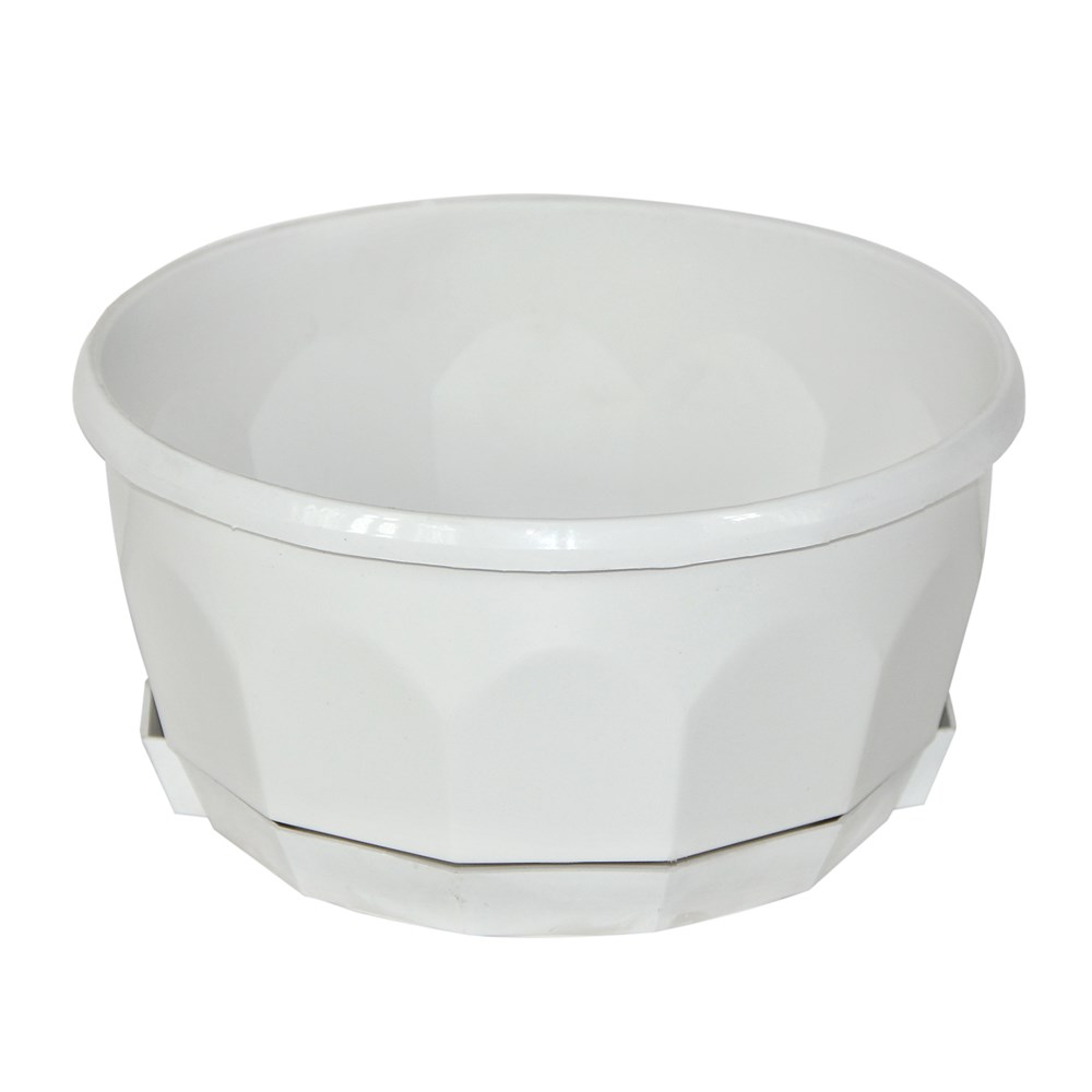 Vazo lulesh rrethore, FIORELLA, plastike, e bardhë, Ø20 xH10 cm
