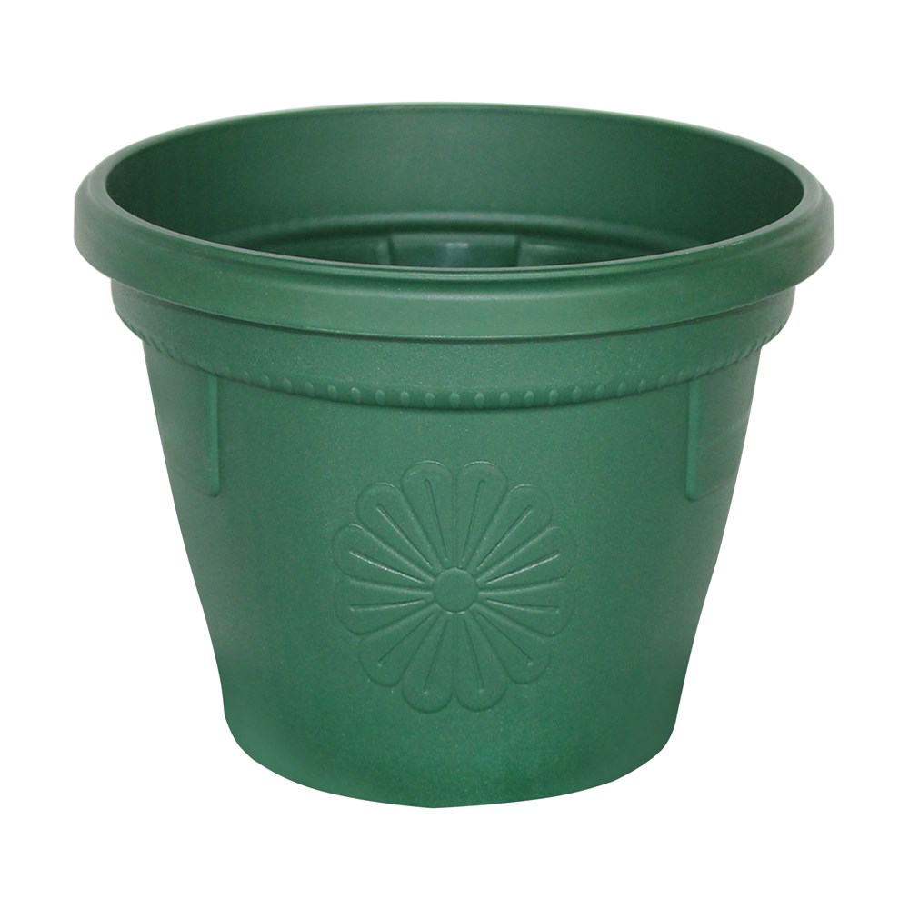 Vazo lulesh rrethore, GERBER, plastike, jeshile errët, Ø14 xH12.5 cm