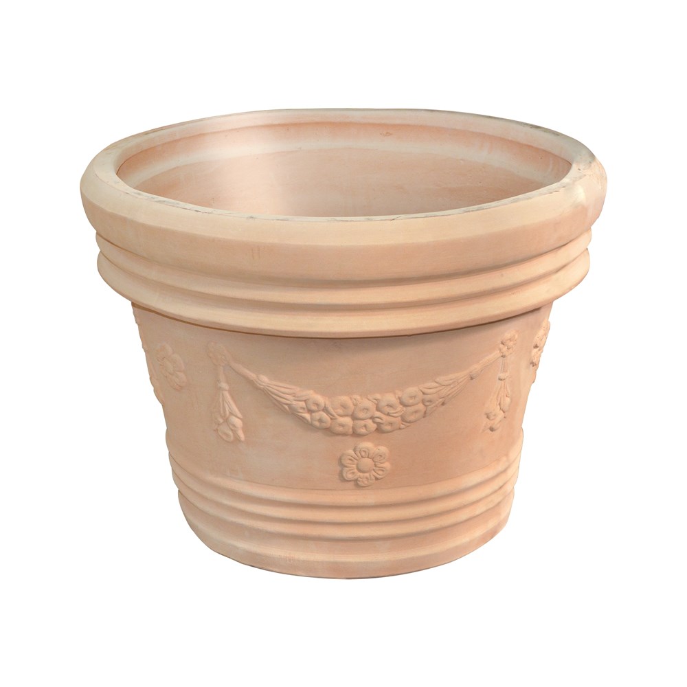 Vazo lulesh rrethore, GIRLANDA, qeramike, terrakota, Ø50 xH30 cm