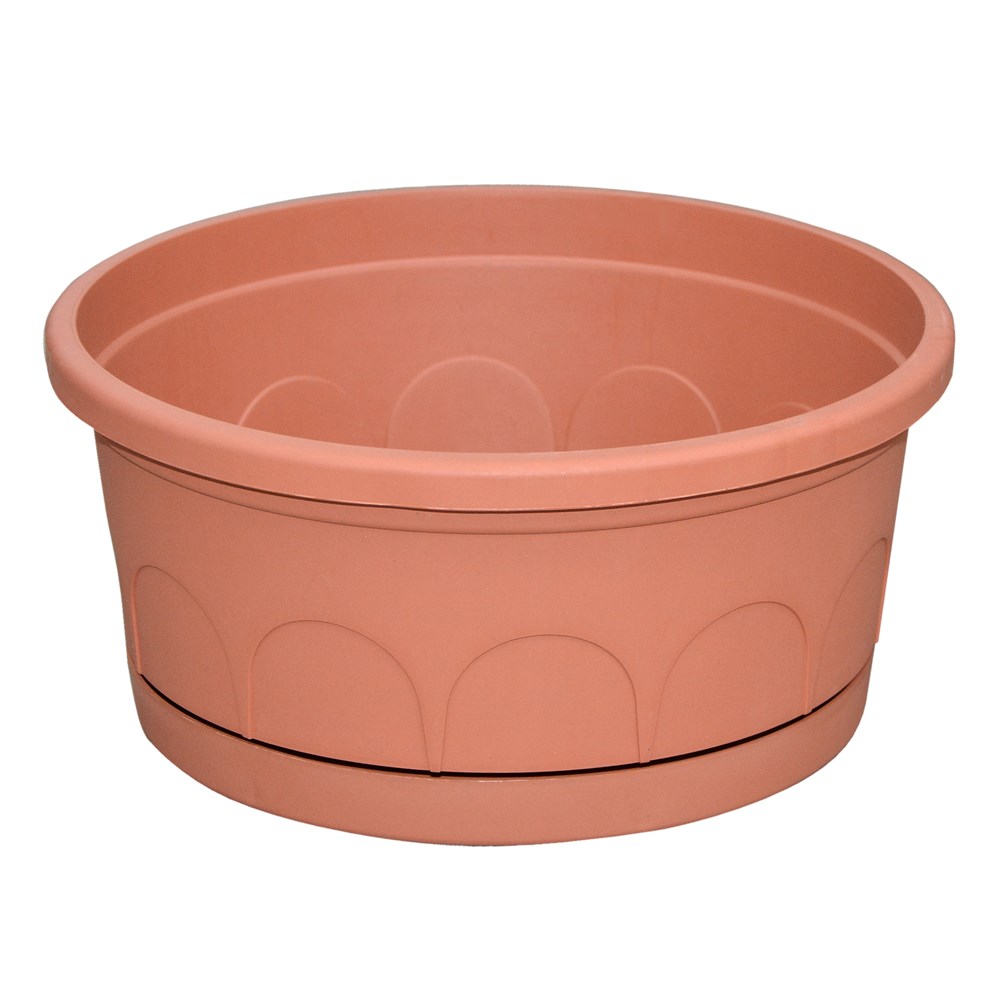 Vazo lulesh rrethore, LEADER, plastike, terrakotë, Ø25 xH12 cm
