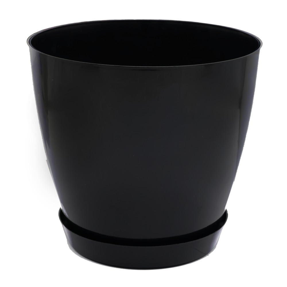 Vazo lulesh, rrethore, plastike, e zezë, Ø22xH21 cm