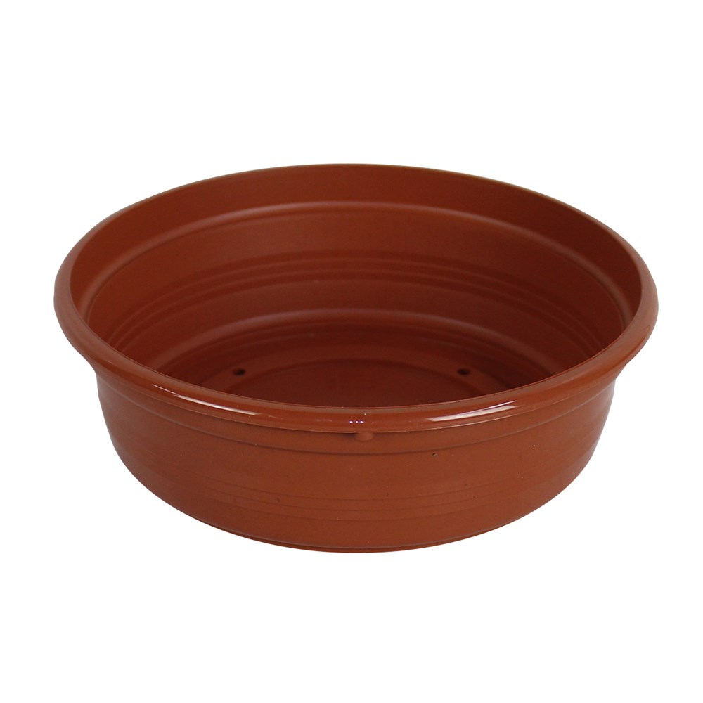 Vazo lulesh rrethore, PRIMAVERA, plastike, terrakotë, Ø18 xH6 cm