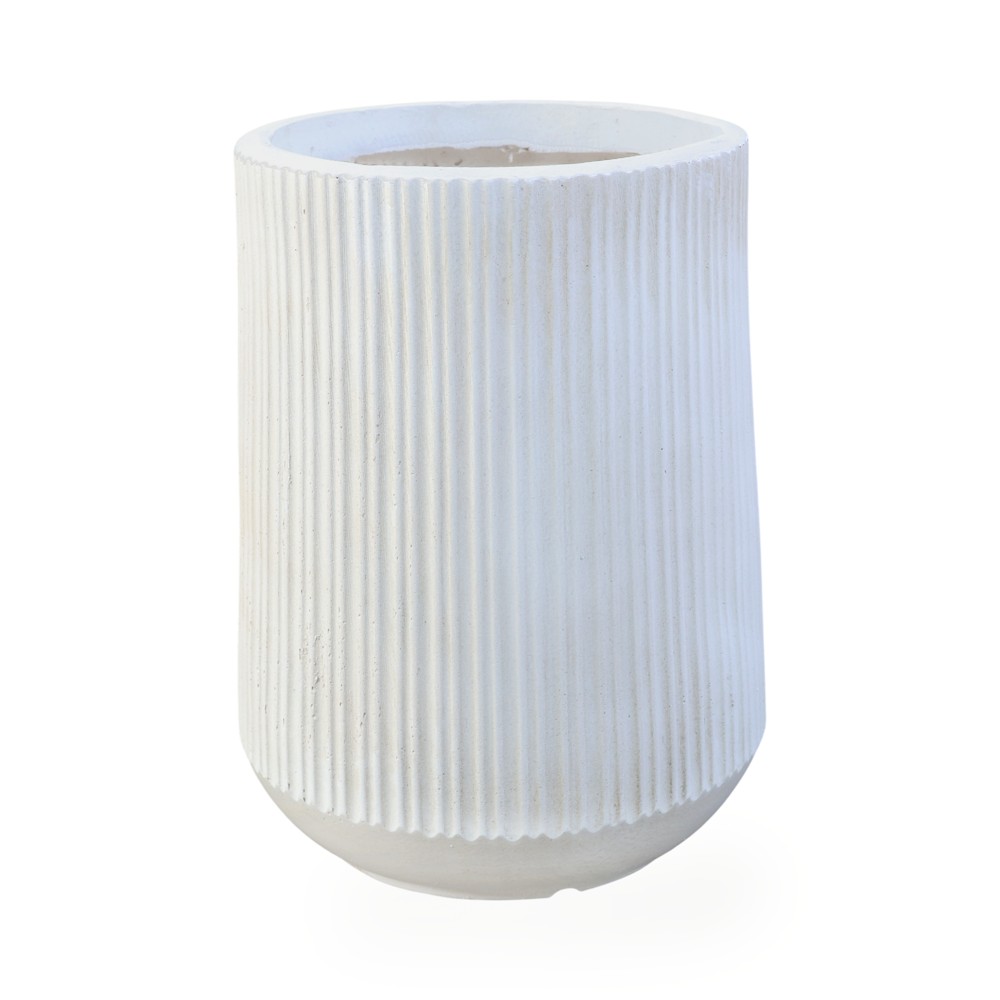 Vazo lulesh, e punuar nga argjilë cilësore në ngjyrë të bardhë të pastër, që reflekton thjeshtësi dhe elegancë. Me përmasa 26x26 cm dhe lartësi 33 cm, kjo vazo është ideale për lule apo bimë të vogla dekorative, duke sjellë freski dhe harmoni në çdo ambient. Dizajni i saj minimalist e bën të lehtë për t’u kombinuar me stile të ndryshme interieri dhe eksterieri, duke shtuar një prekje natyrale dhe të rafinuar në hapësirën tuaj. E përkryer për shtëpi, zyra apo ambiente komerciale. Mund të përdoret si për mbjelljen e luleve të ambienteve të jashtme ashtu edhe atyre të brendshme. Materiali i saj rezistent, jo vetëm që ruan higjenën e ambientit ku ju do e kompozoni, por gjithashtu ju ofron garanci falë nërthurjes së materialit të argjilës me fibra.