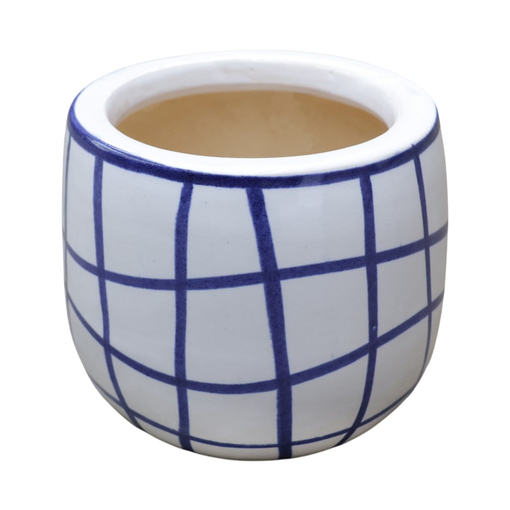 Vazo lulesh, S, qeramike, e bardhë/blu, Ø16xH13 cm