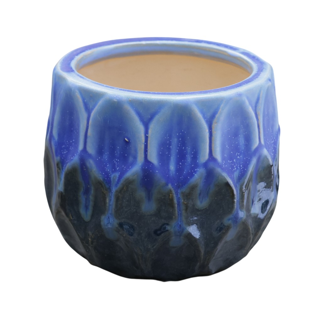 Vazo lulesh, S, qeramike, e zezë/blu, Ø16xH13 cm