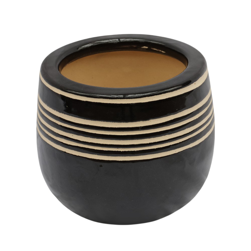 Vazo lulesh, S, qeramike, e zezë, Ø15xH13 cm
