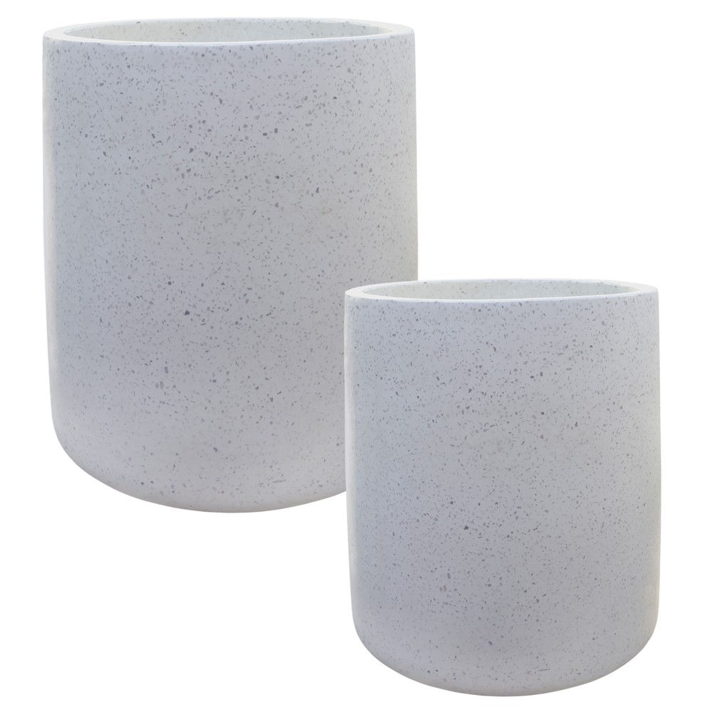 Vazo lulesh, set 2 copë, beton, e bardhë, M: 47x47xH55cm, L: 65x65xH70cm
