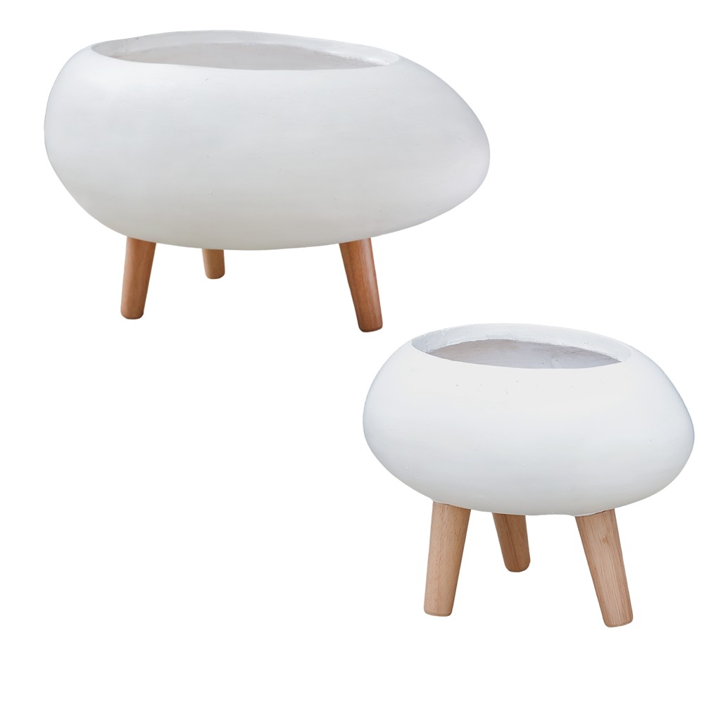 Vazo lulesh, set 2 copë, fibër xhami/argjilë, e bardhë, 30x22x25 cm; 50x35x31 cm