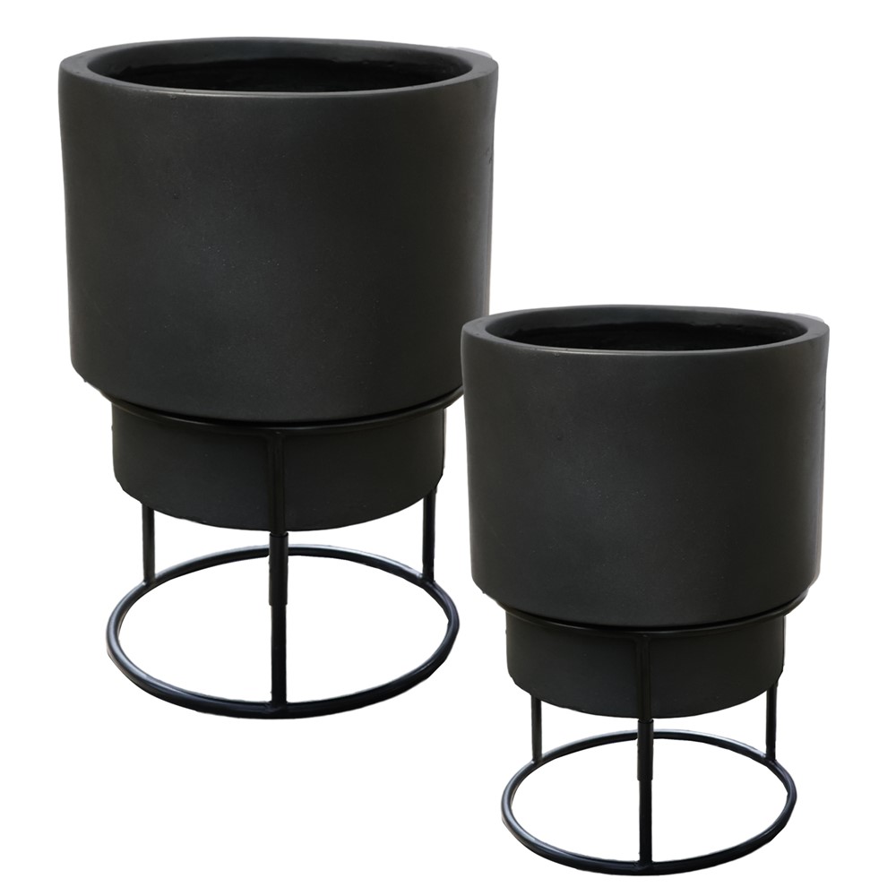 Vazo lulesh, set 2 copë, fibër xhami/argjilë, e zezë, 24x24x35 cm; 30x30x50 cm
