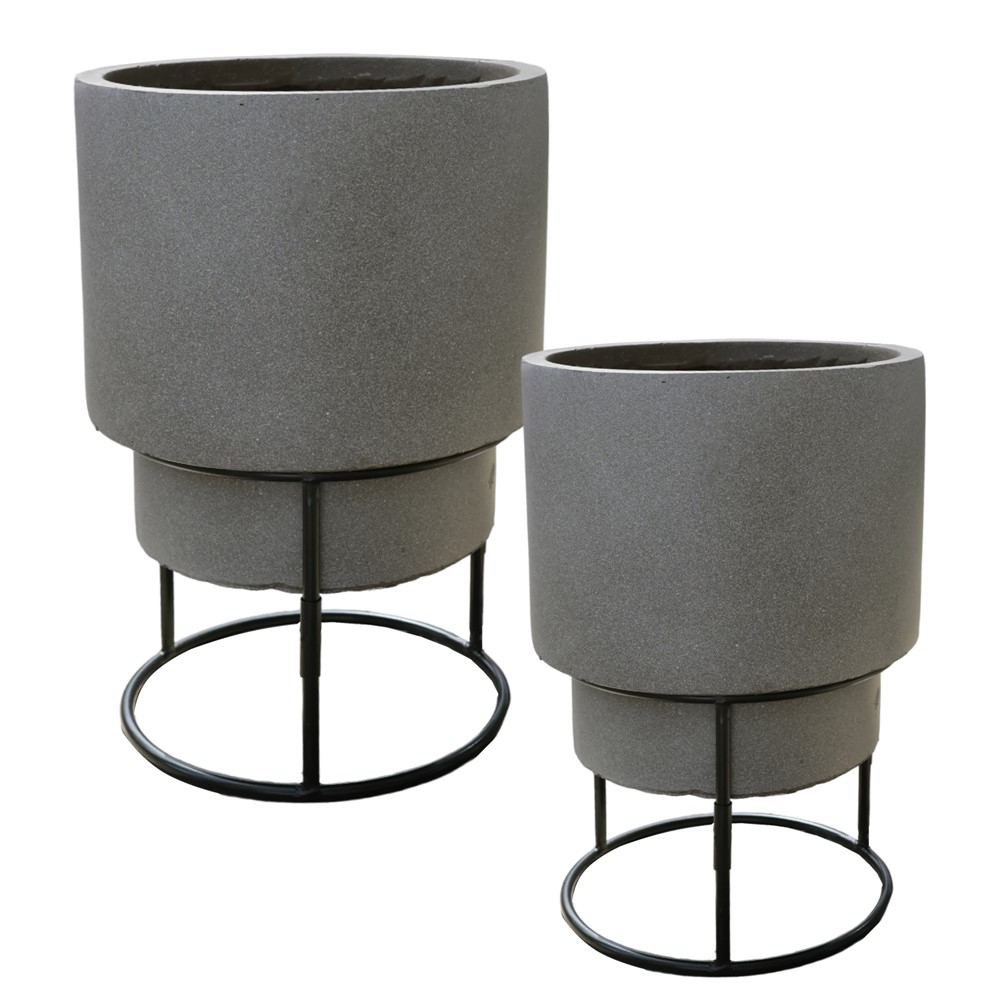 Vazo lulesh, set 2 copë, fibër xhami/argjilë, taupe, 24x24x35 cm; 30x30x50 cm