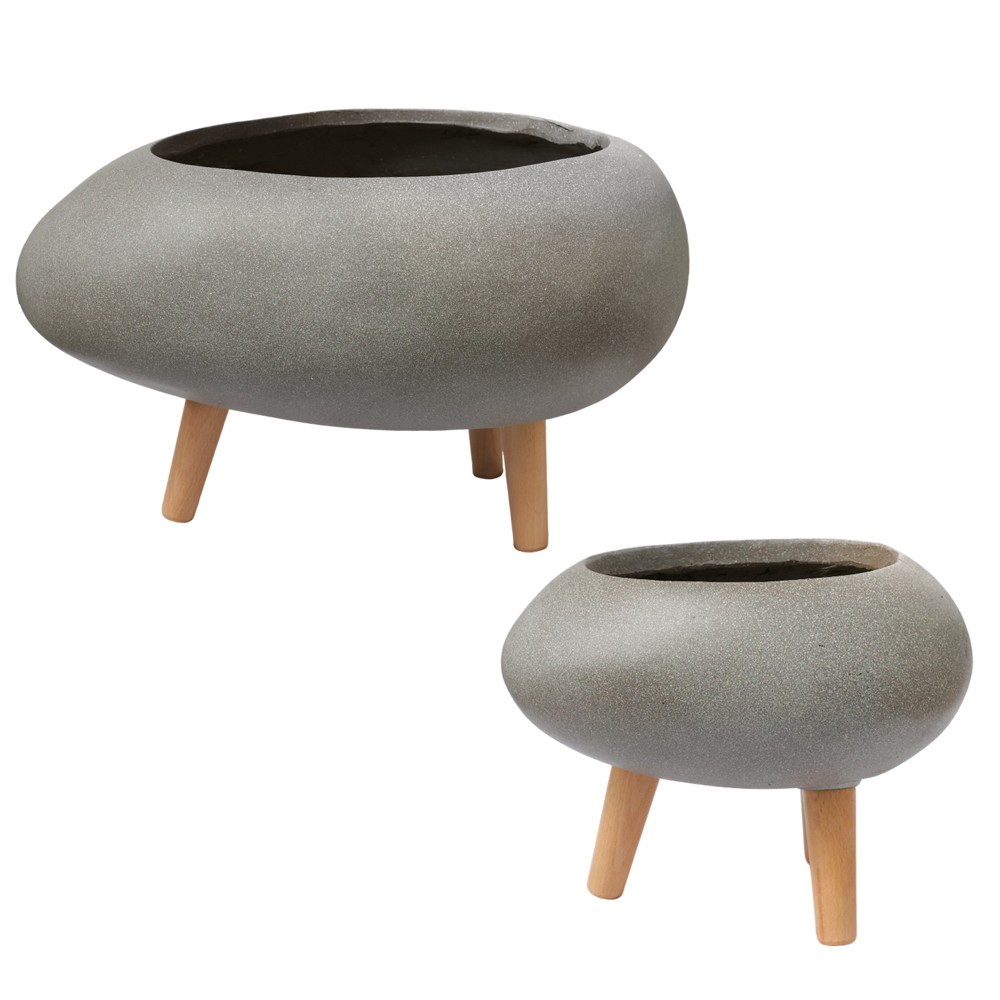 Vazo lulesh, set 2 copë, fibër xhami/argjilë, taupe, 30x22x25 cm; 50x35x31 cm