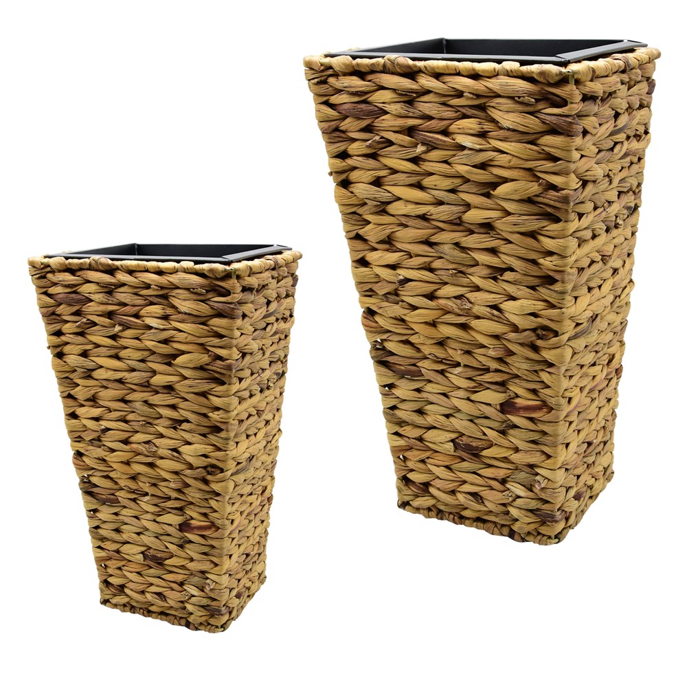 Vazo lulesh, set 2 copë, kashte dhe plastike, natyrale, 24x24xH41 cm; 32x32xH63 cm