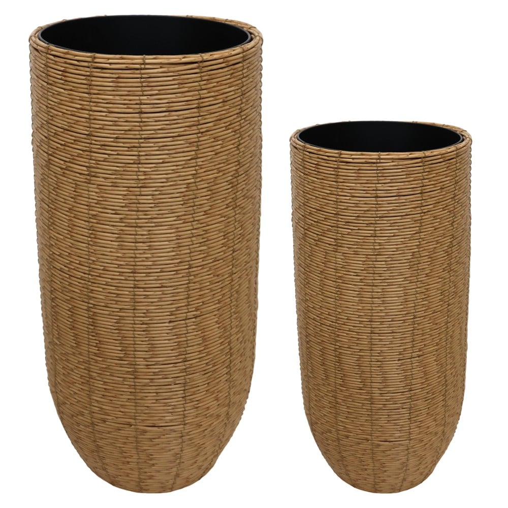 Ky set i vazo lulesh është një zgjedhje e shkëlqyer për të shtuar një prekje natyrale dhe elegante në dekorin e shtëpisë suaj. Vazot kanë një dizajn të thjeshtë dhe të bukur, që i bën ato të përshtatshme për të kombinuar me stilin e ndryshëm të dekorimit të shtëpisë tuaj. Struktura e kashtës jep një ndjenjë autentike dhe natyrore, duke sjellë një atmosferë të qetë dhe të qëndrueshme.