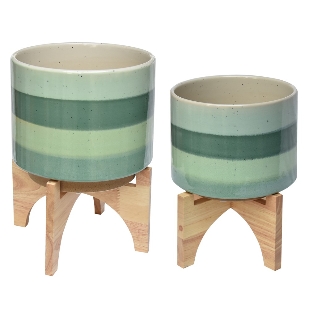 Vazo lulesh qeramike me mbajtëse druri sjell freski dhe ngjyra në ambientet tuaja. Dizenjuar plot dashuri, frymëzuar nga natyra dhe kreative deri në detaje ky koleksion unik është përzgjedhur për të plotësuar tendencat e fundit të orendive në ambientet e jashtme të shtëpisë tuaj.