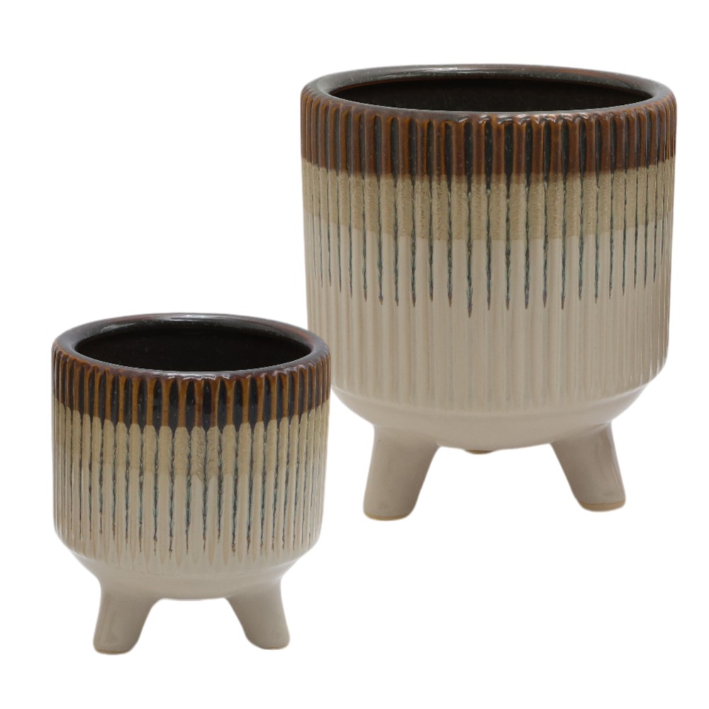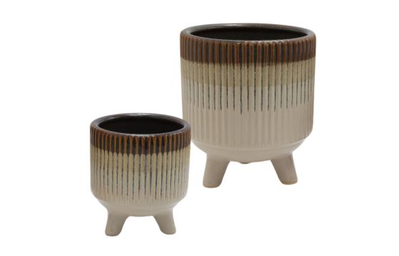 Vazo lulesh, set 2 copë, qeramike, Bezhë/Kafe