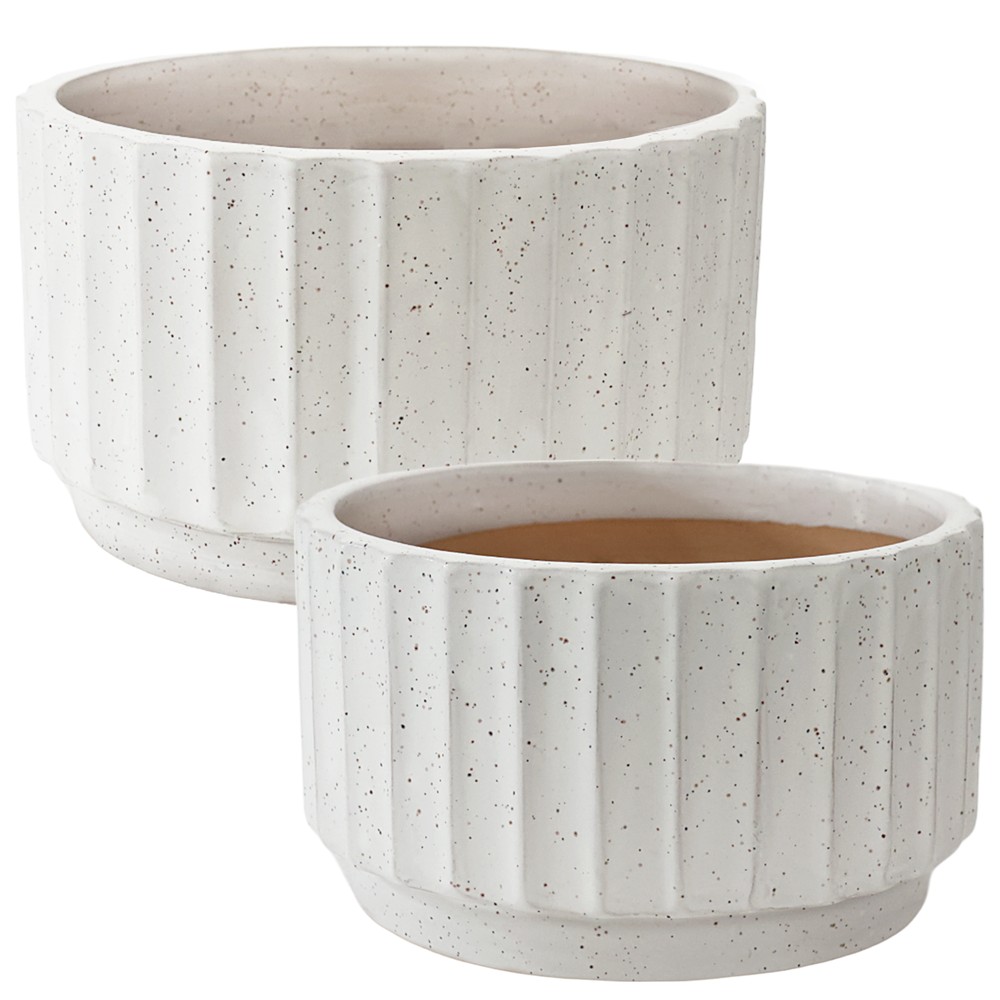 Vazo lulesh, set 2 copë, qeramike, e bardhë, 22x22x13 cm; 29.5x29.5x17 cm
