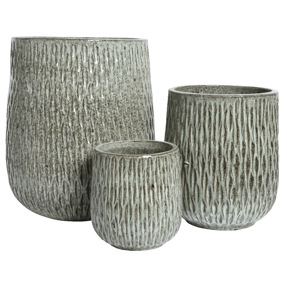 Po vlerësoni:Vazo lulesh, set 3 copë, daniel, vrimë kullimi, terrakotë, e bardhë