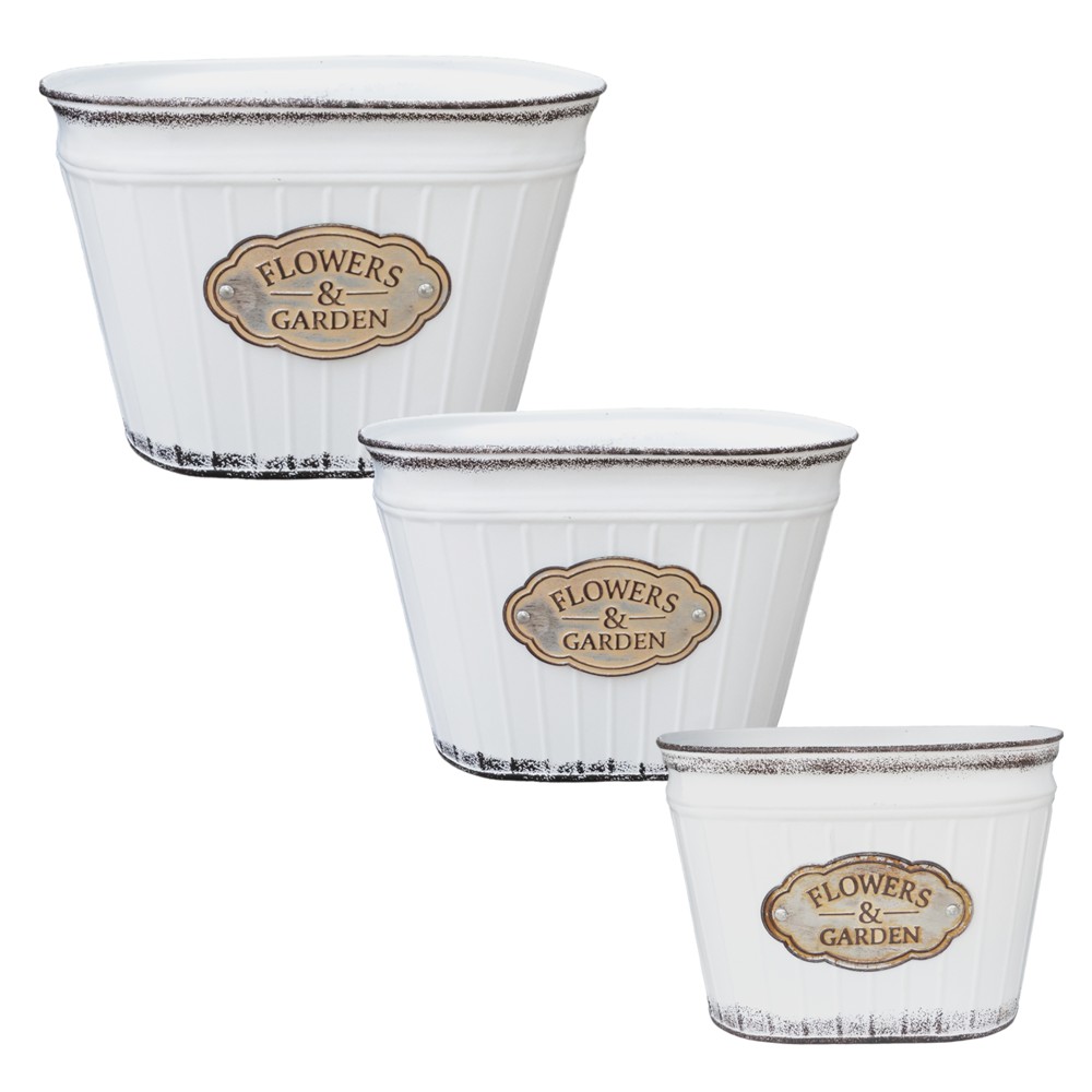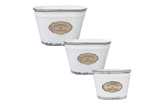 Vazo lulesh, set 3 copë, metalike, e bardhë/kafe, 21x13x15 cm; 24x15x17 cm; 28x17x19 cm