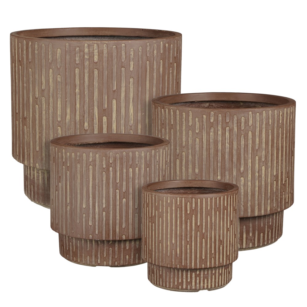 Vazo lulesh, set 4 copë, Oslo, qeramike, kafe, Ø26xH26.5 cm; Ø31xH30.5 cm; Ø37xH36.5 cm; Ø44.5xH43 cm
