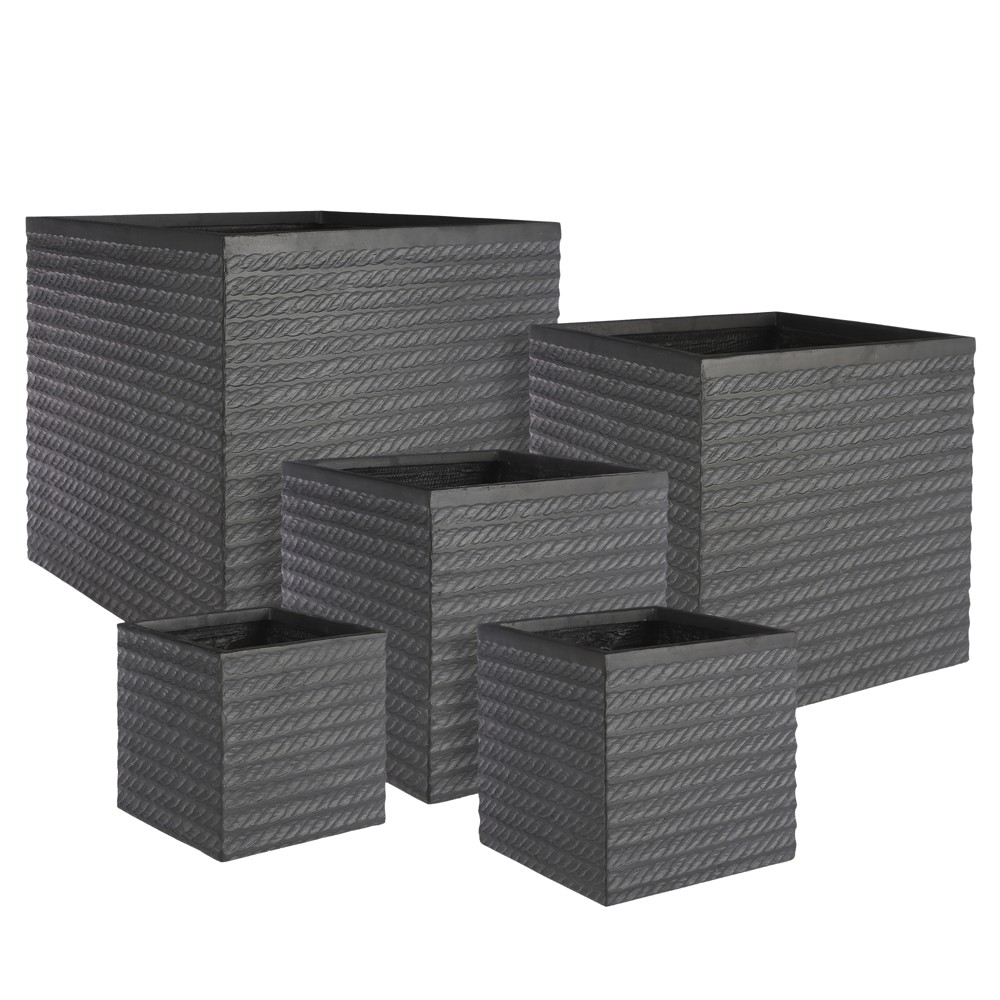 Vazo lulesh, set 5 copë, Corda, beton, e zezë, 25x25xH25cm; 30x30xH30cm; 37x37xH37 cm; 44x44xH44.5 cm; 55x55xH52.5 cm