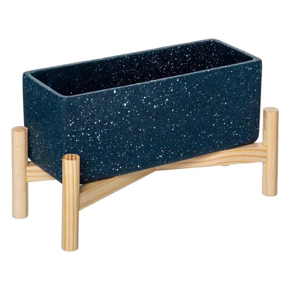 Po vlerësoni:Vazo lulesh, strukturë druri, çimento, blu, 35x14xH14 cm