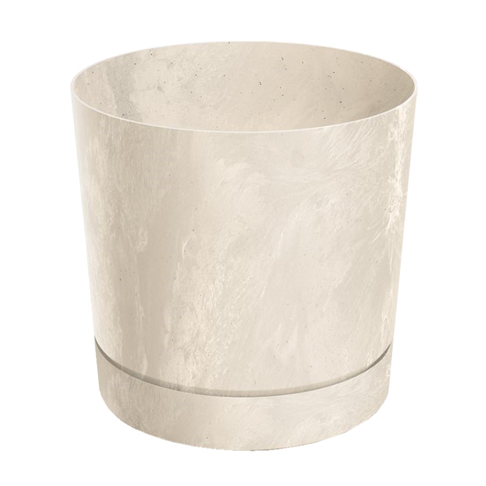 Vazo lulesh, Tubo, plastike, efekt betoni, krem, 19.9x19.6 cm