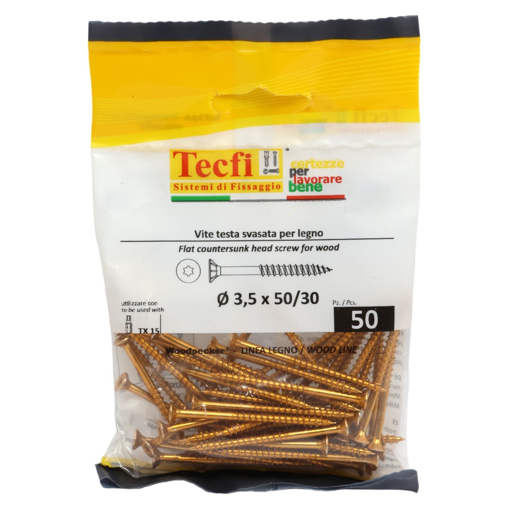 Vida druri koke trox e verdhe, Ø3,5x50/30mm , Bag 50