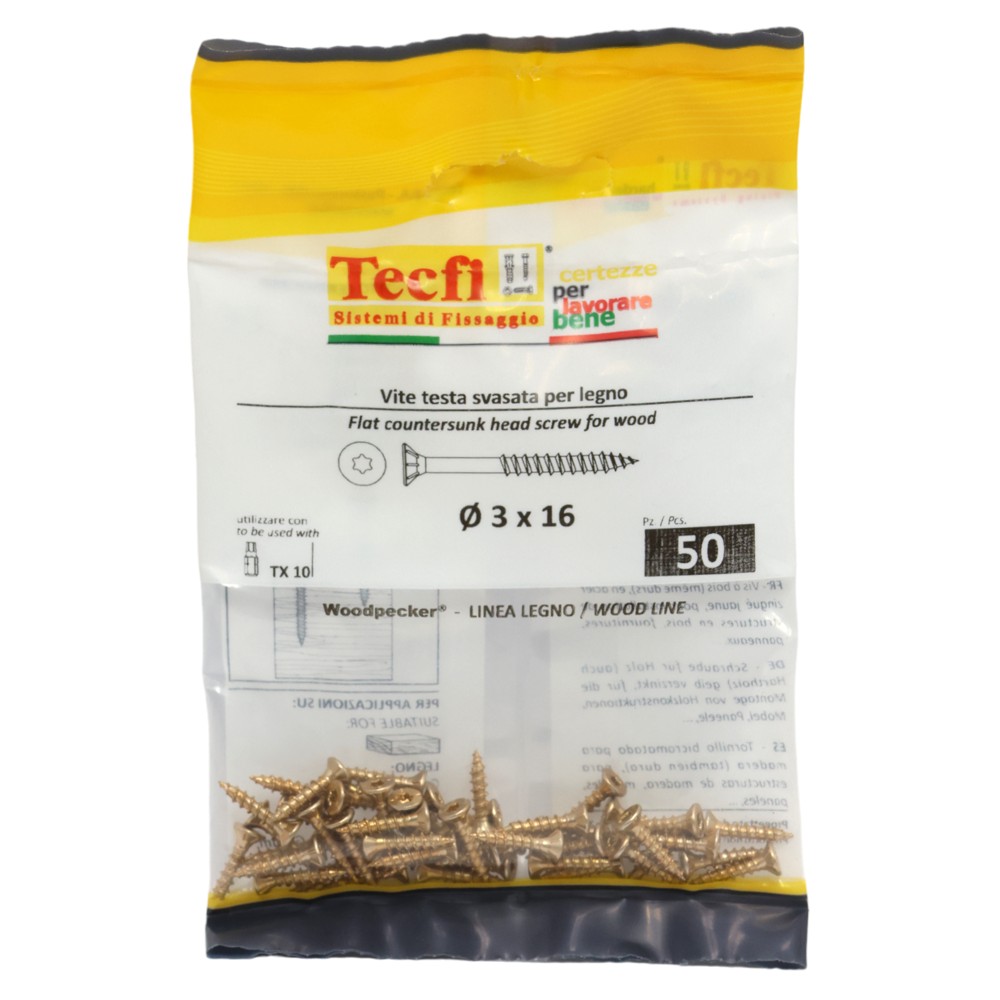 Vida druri koke trox e verdhe, Ø3x16mm , Bag 50