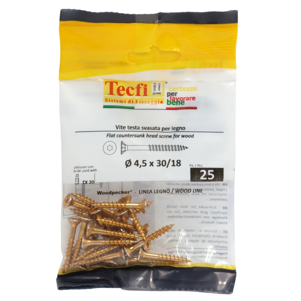 Vida druri koke trox e verdhe, Ø4,5x30/18mm , Bag 25