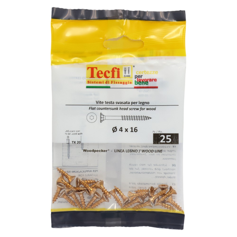 Vida druri koke trox e verdhe, Ø4x16mm , Bag 25