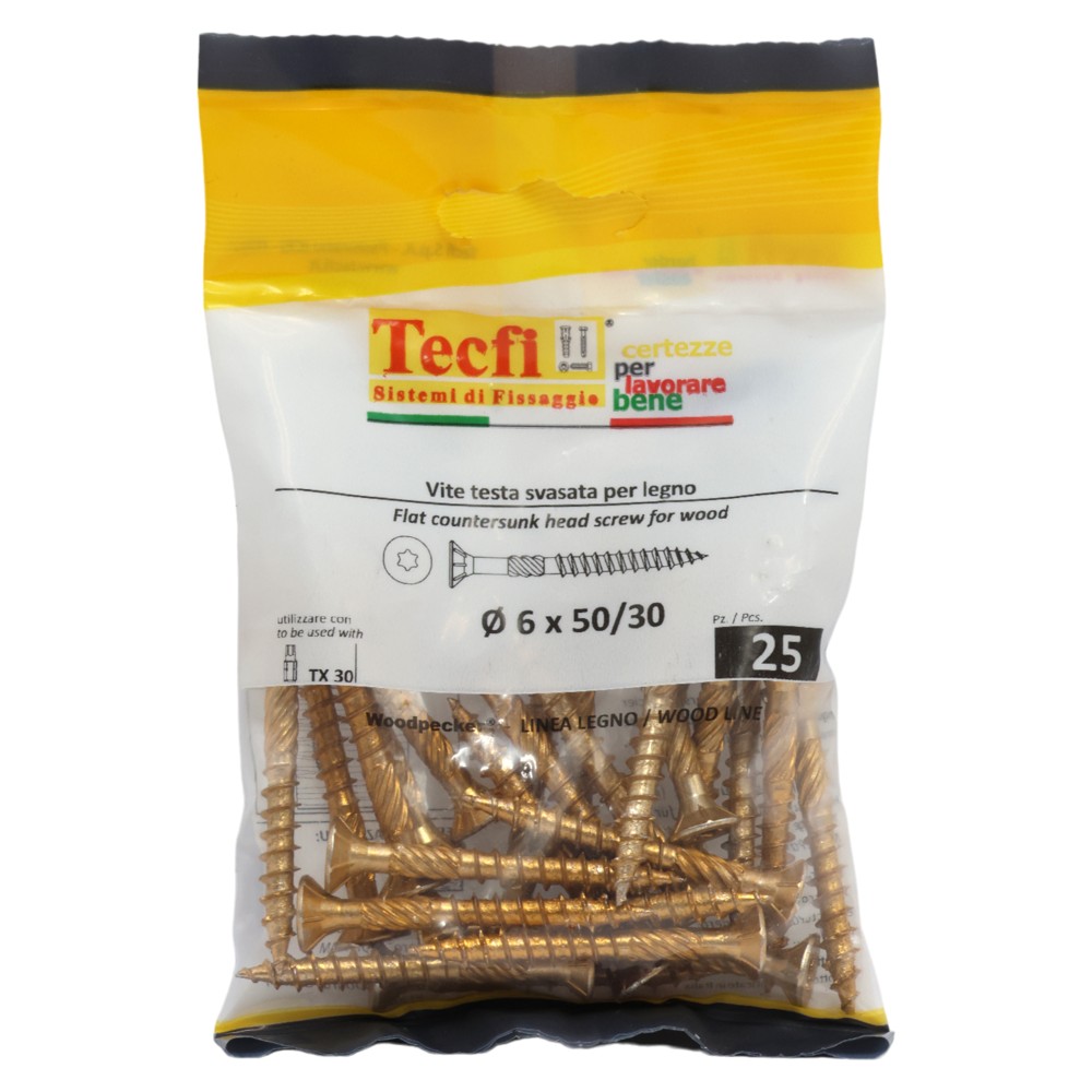 Vida druri koke trox e verdhe, Ø6x50/30mm , Bag 25